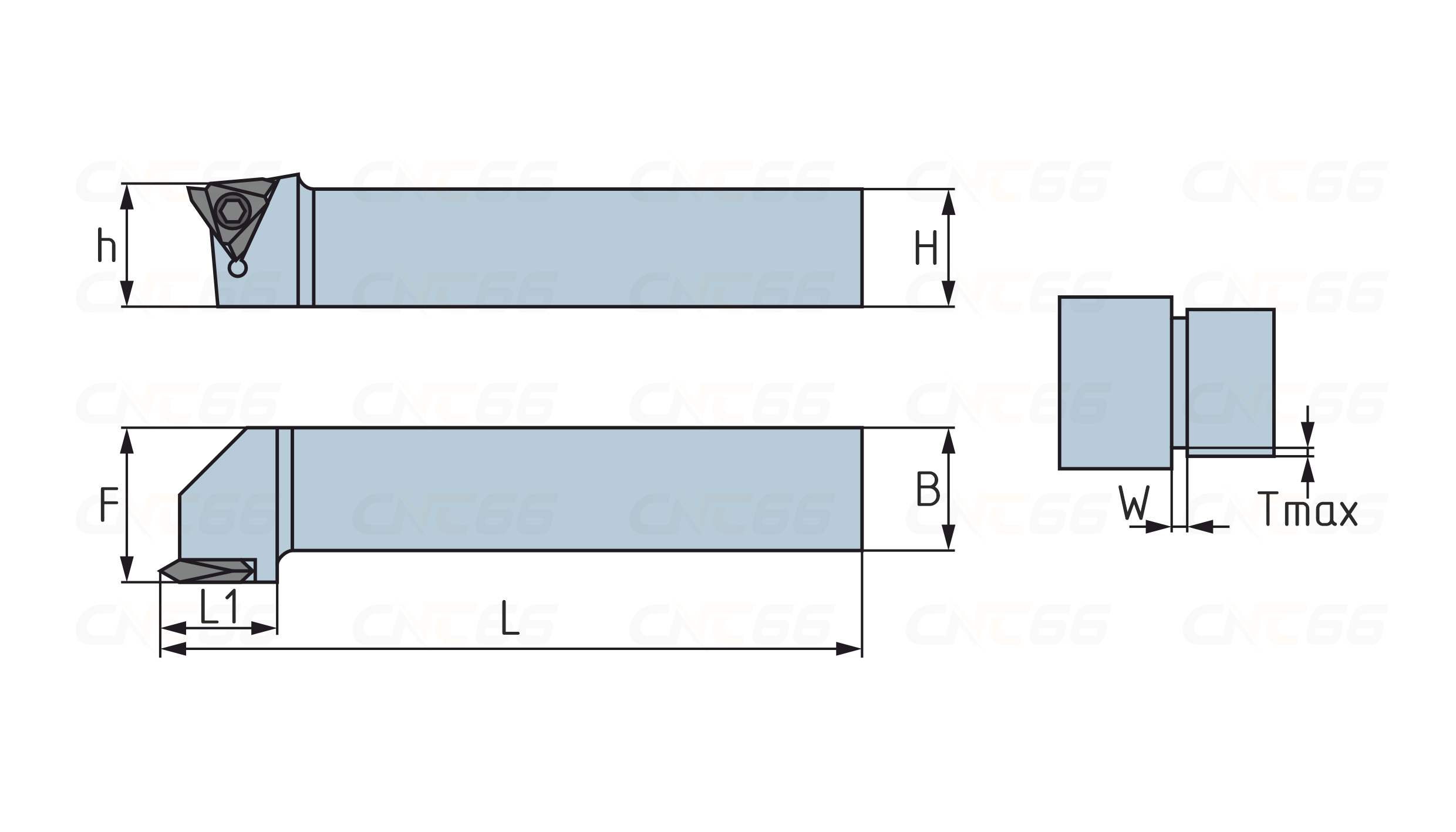 Резец токарный отрезной по металлу со сменными пластинами. Для пластин TKF16R***, TKFB16R**, TKFT16R** . Для отрезки и нарезания резьбы.
