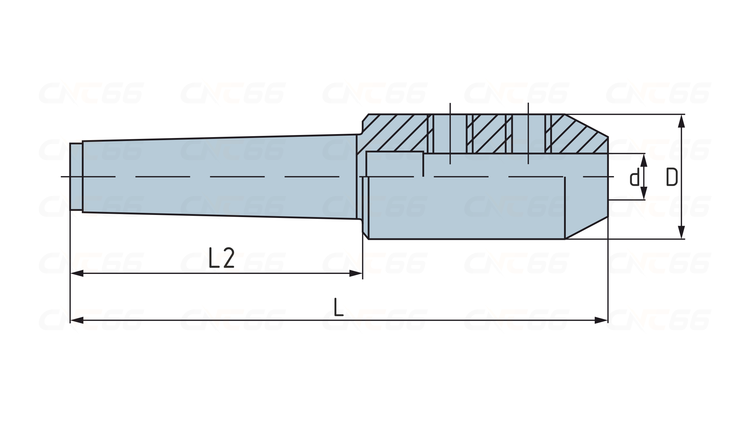 Патрон MTB5 предназначен для фиксации сверл с цилиндрическим хвостовиком Weldon. Фиксация хвостовика MTB5 в шпинделе производится при помощи заклинивания лапки. Для демонтажа патрона используется специальный инструмента - выколотка. Конструкция без подачи СОЖ.