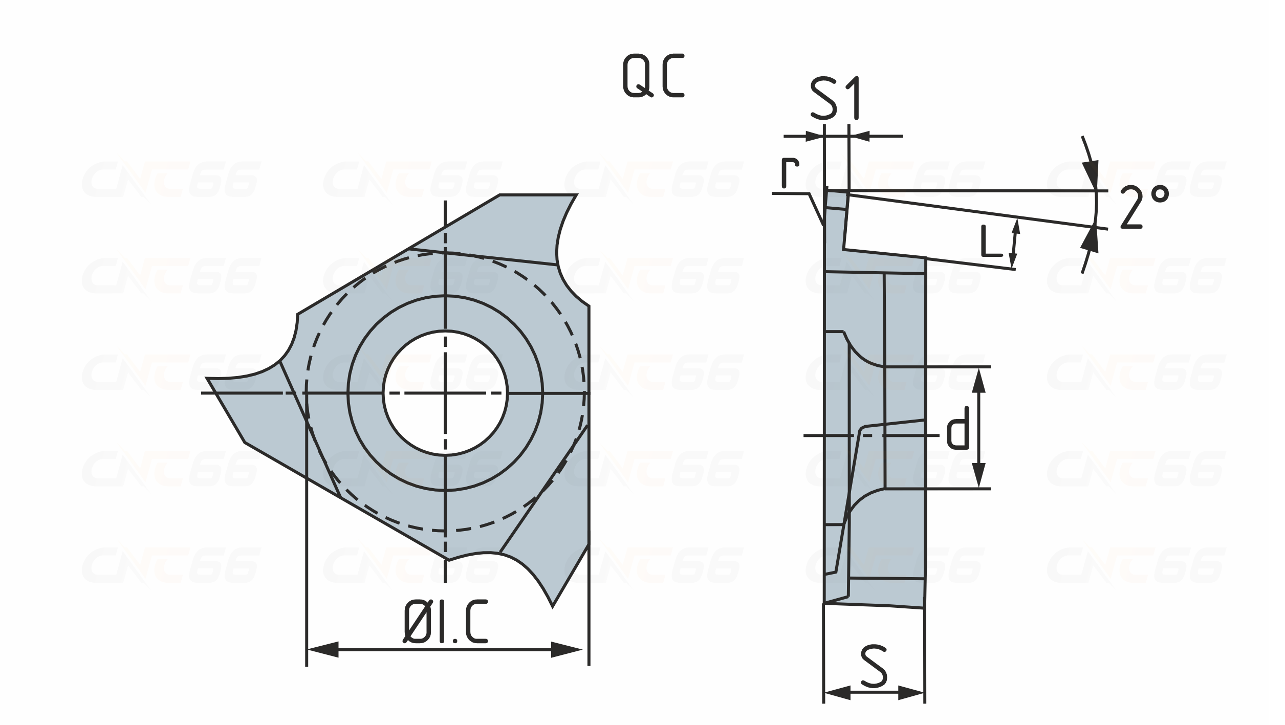 Пластины твердосплавные сменные QC.. используются для обработки канавок. Тип обрабатываемого материала - сталь, нержавеющая сталь, жаропрочные сплавы. В каталоге представлены пластины с шириной рабочей части от 1 до 4 мм. Область применения: державки GQCR/L (для наружных канавок), S...-QCR/L (для внутренних канавок).