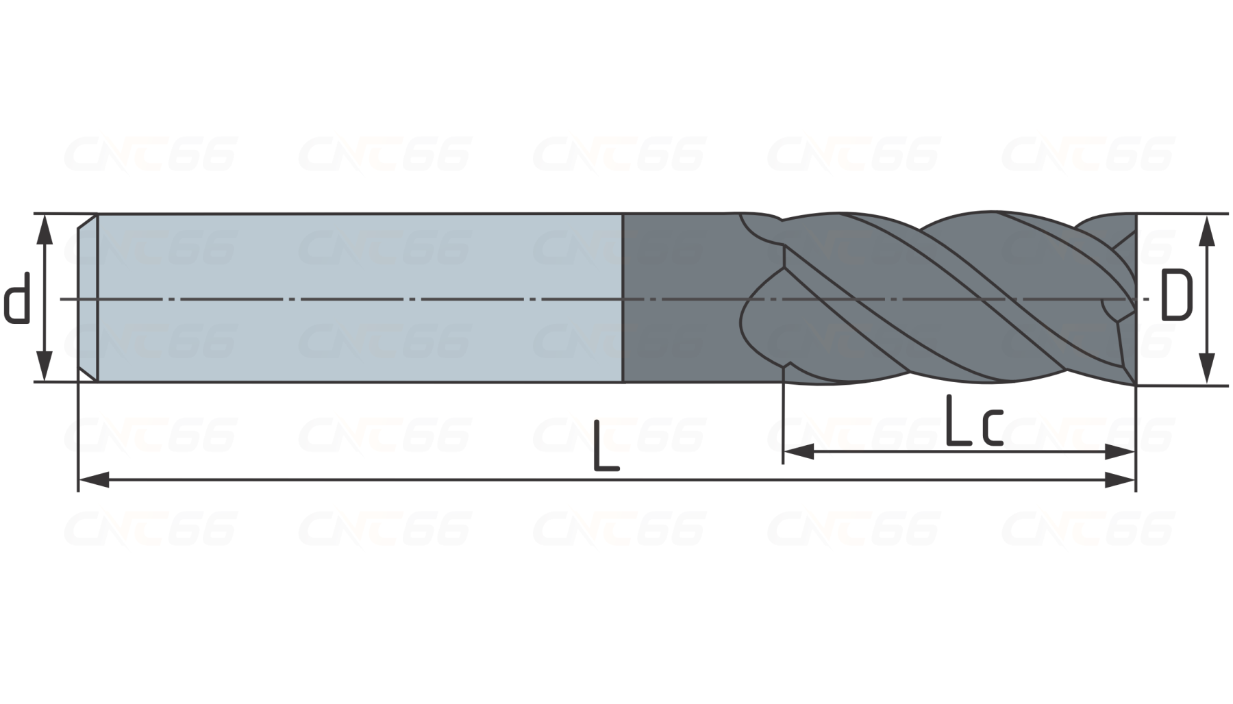 - Концевая фреза с плоским торцом 4 зуба, HRC 45, AlTiN 4х10х50